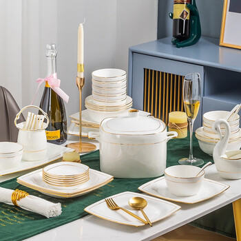 厨具---餐具---餐具套装冠朴(GUANPU)金镶玉方形56件套