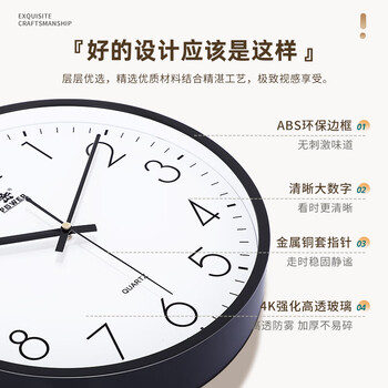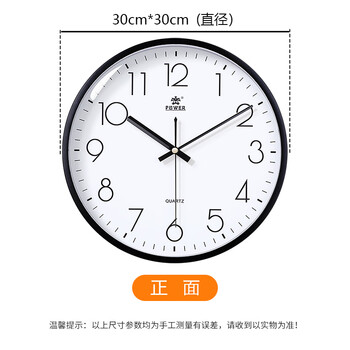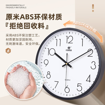 POWER霸王挂钟表客厅经典简约挂墙免打孔时钟石英钟30cm黑239518B3