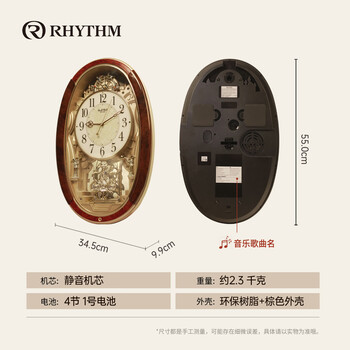 丽声(RHYTHM)式创意挂表客厅表挂墙53cm装饰奢华整点报时音乐挂钟4MJ895WD23