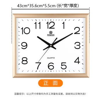 POWER霸王挂钟 客厅方形大钟表简约创意挂墙时钟长43cm BW23040D1金