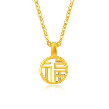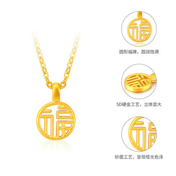 梦金园黄金吊坠5D硬金国潮福字圆牌挂坠女款礼物