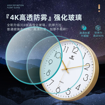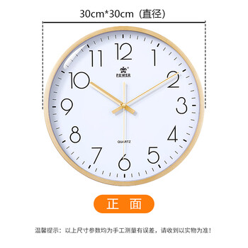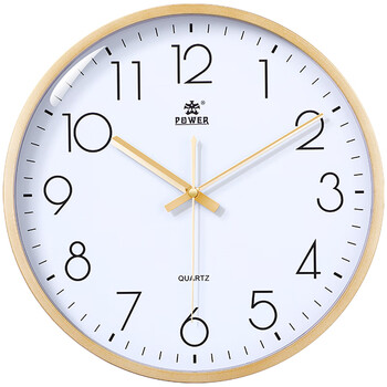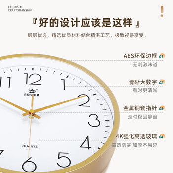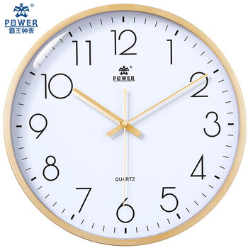 POWER霸王挂钟表客厅经典简约挂墙免打孔时钟石英钟30cm金239518A3