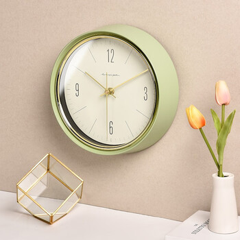 BBA 挂钟客厅卧室家用创意欧式金属挂表免打孔挂墙时钟22.5cm橄榄绿