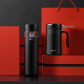 Vanow茶水分离保温杯男套装泡茶杯企业年会礼品定制LOGO便携水杯子