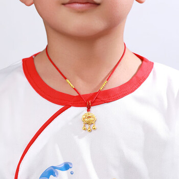 Lossot如意福足金黄金长命锁吊坠5D金平安锁宝宝款儿童金饰小孩生日礼物