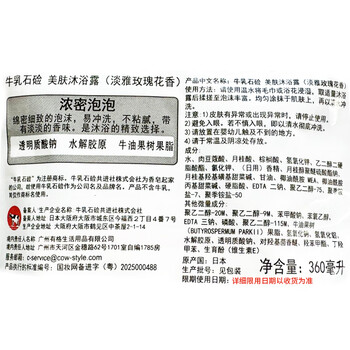 牛乳石硷碱COW美肤沐浴露360ml淡雅玫瑰花香泡沫丰富易冲洗不假滑热门商品