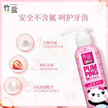 竹盐LG儿童派缤按压式牙膏2-6岁160g*1瓶草莓味8无添加无氟安心