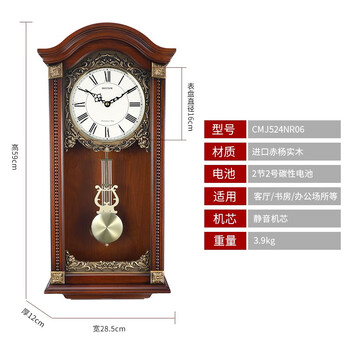 丽声(RHYTHM)报时挂钟创意欧式挂表木制静音表挂墙客厅钟表59cm CMJ524NR06