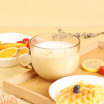 拜杰早餐杯燕麦杯玻璃碗茶色玻璃杯杯子牛奶杯马克杯水杯带勺子430ML