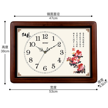 汉时(Hense)中式实木挂钟客厅长方形中国风挂表时钟石英钟表HW118横版牡丹