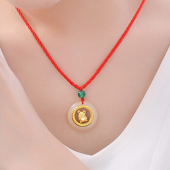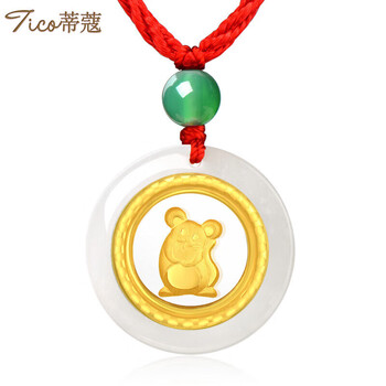 蒂蔻(Tico)十二生肖鼠金镶玉吊坠项链男女款和田玉平安扣小孩款宝宝周岁礼物