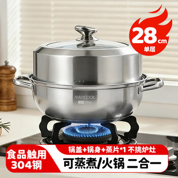 美厨(maxcook)蒸锅汤锅火锅 304不锈钢28cm单层汤蒸锅 加厚复底汤蒸锅