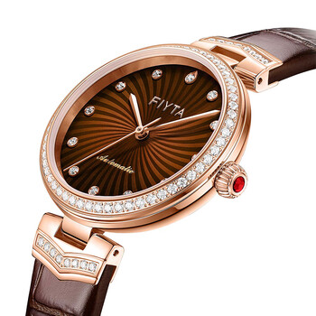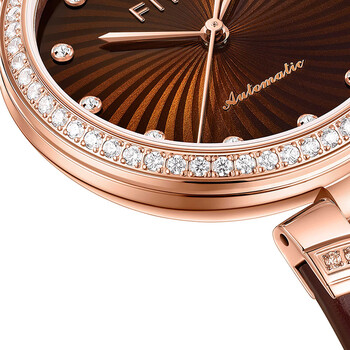 飞亚达(FIYTA)心弦系列商场同款机械锆石表圈咖盘竹节皮表带女表 节日礼物女