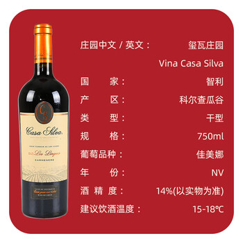 Casa Silva大地之话安第斯骆铃园佳美娜干红葡萄酒 750ml整箱 智利 热门商品