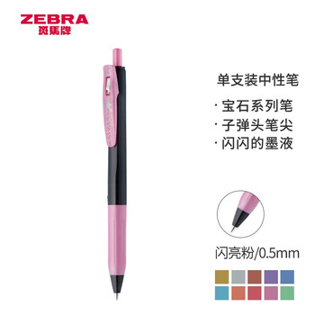 斑马牌(ZEBRA)JJ15宝石系列中性笔 0.5mm按动中性笔子弹头签字笔 学生手账笔标记笔 JJ15-SP 闪亮粉