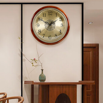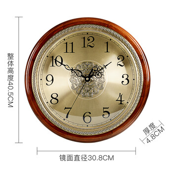 汉时(Hense)实木挂钟轻奢大气客厅时钟挂墙挂表家用石英钟表HW38B款40.5cm