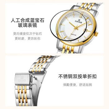 依波(EBOHR)手表大师系列间金钢带石英情侣对表生日节日礼物56690316/323