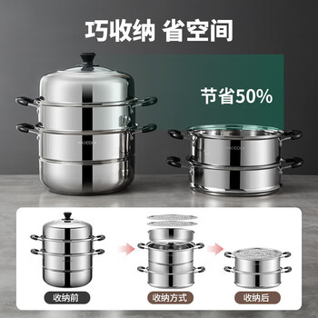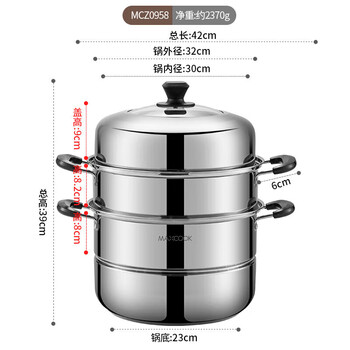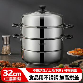 美厨(maxcook)蒸锅 不锈钢32CM三层蒸锅 加厚复底汤蒸锅 燃气电磁炉通用MCZ0958
