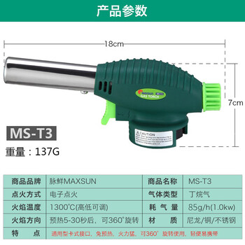 脉鲜(MAXSUN)卡式打火枪 MS-T3 喷枪 喷火枪 烧猪毛 烧烤烘焙火枪 自动点火器