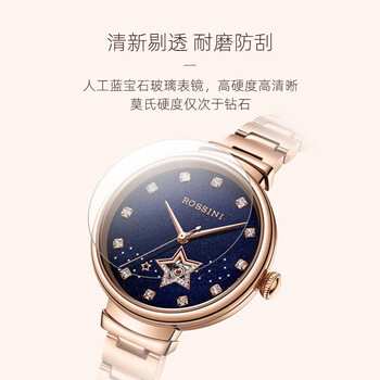 罗西尼(ROSSINI)手表女自动机械表蓝盘钢带生日礼物送女友国表气质镂空 5210060