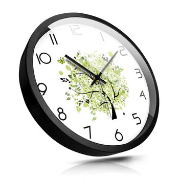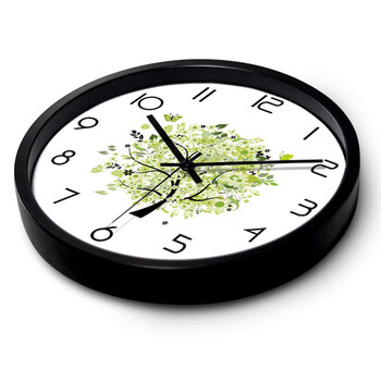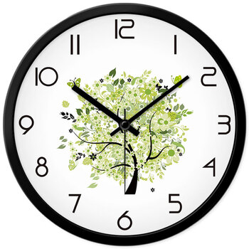 摩门(Momen)挂钟 创意客厅金属挂钟挂表清新绿树插画现代家居装饰石英钟 30cm