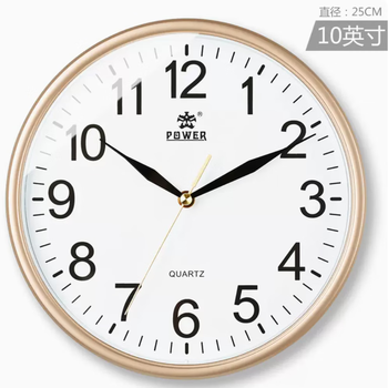 POWER霸王挂钟 客厅简约时钟创意低音挂墙电子钟25cm金不挑电池