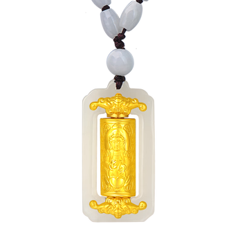 蒂蔻(Tico)观音菩萨金镶玉吊坠翡翠项链男玉坠可转动和田玉车挂饰生日礼物