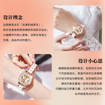 欧利时(OLEVS)手表女款机械名表全自动瑞士认证品牌高级防水生日礼物送妈妈女友