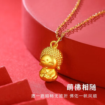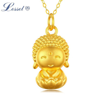 Lossot吉祥如意足金开心佛黄金吊坠项链女金镶玉和田玉佛坠子生日礼物