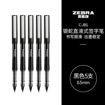 斑马牌(ZEBRA)银蛇直液式签字笔 0.5mm子弹头拔帽中性笔 学生刷题笔记标注笔 办公用黑笔 C-JB1 黑色 5支装
