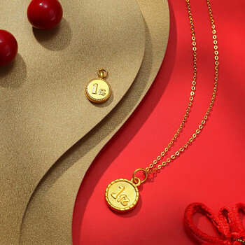 潮宏基第一桶金足金黄金吊坠女转运珠送宝宝生日礼物 小版(双面可戴)