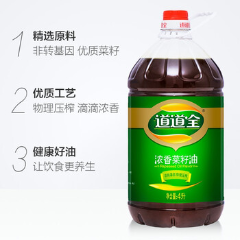 道道全菜籽油 食用油 浓香菜籽油 物理压榨非转基因 4L*1桶