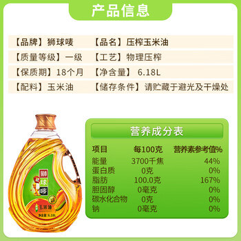 狮球唛非转基因压榨一级玉米油6.18L 团购送礼 百年品牌