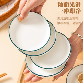 传旗 小碟子 4英寸4只 蘸料碟 陶瓷吐骨碟小菜碟盘碟 霜华