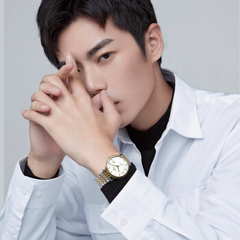 依波(EBOHR)手表男大师系列间金色钢带石英防水男表生日节日礼物56690316