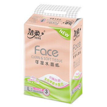 洁柔抽纸 4D科技压花3层120抽纸面巾3包/提*16提(L号纸巾 粉Face亲肤食品级)无香无化学粘胶