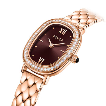 飞亚达(FIYTA)倾城系列 威化小可可棕盘玫瑰金色钢带女士手表 节日礼物送老婆