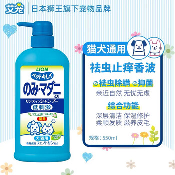 狮王艾宠宠物狗狗猫咪沐浴露祛虫除螨除臭550ml猫狗通用二合一