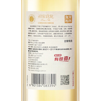 张裕旗下初蜜真我冰菁晚采威代尔甜白葡萄酒750ml单瓶装自营红酒