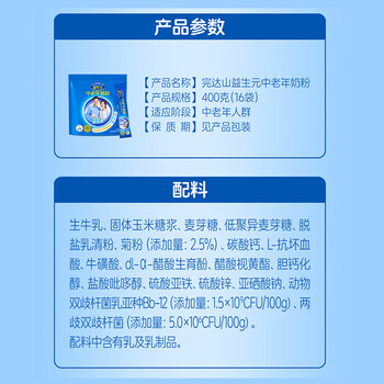 完达山益生元中老年奶粉硒生牛乳0添加白砂糖低GI(新老包装发货)400g