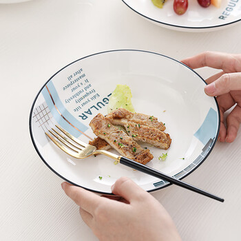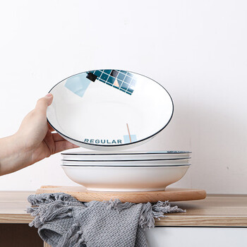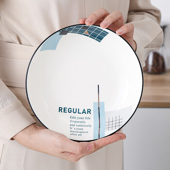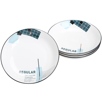 苏氏陶瓷汤菜盘子城市方格8英寸小清新简约家用陶瓷碟4只装中餐具