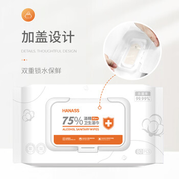 HANASS75%酒精湿巾80抽3包卫生清洁湿巾一次性湿纸巾消毒棉片日常防护