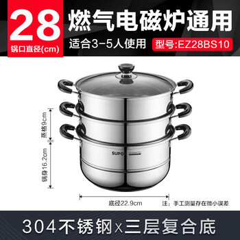 苏泊尔SUPOR 蒸锅真味鲜304不锈钢三层复底28cm蒸鱼锅汤锅蒸笼EZ28BS10