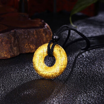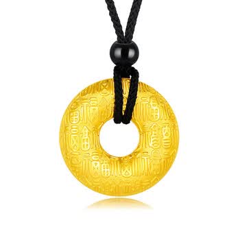 梦金园黄金吊坠足金百福平安扣5D硬金送老婆情侣款