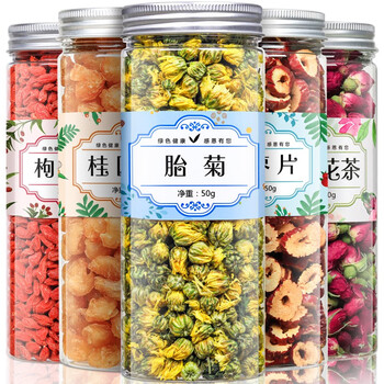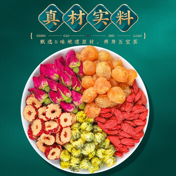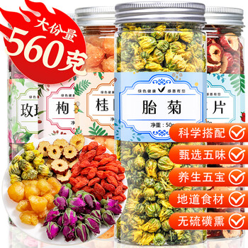 红枣片100g*1/桂圆肉160g*1/红枸杞180g*1/胎菊50g*1/玫瑰花茶70g*1