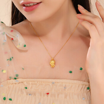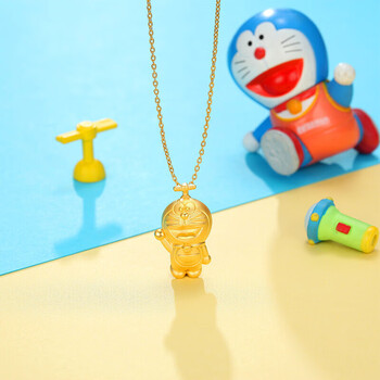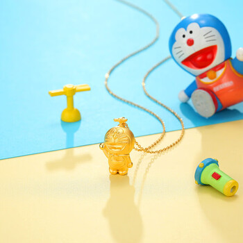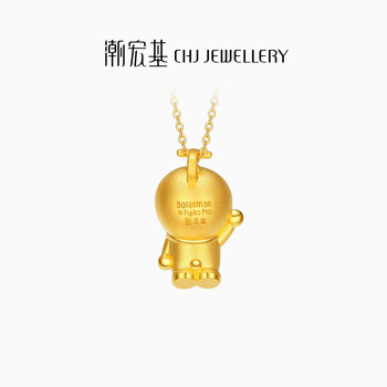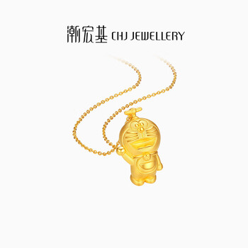 潮宏基哆啦A梦招呼足金硬金黄金吊坠女款送女友生日礼物 单吊坠