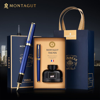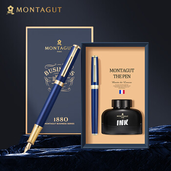 梦特娇(MONTAGUT)【马年礼物】钢笔美工笔墨水礼盒套装弯尖书法绘画男女办公签字笔礼遇系列蓝色1.0mm