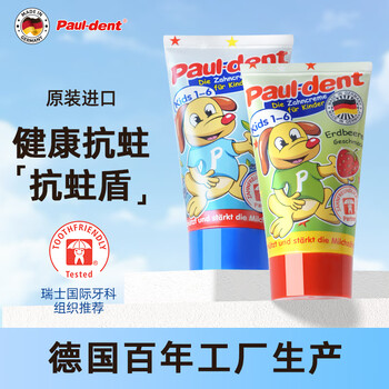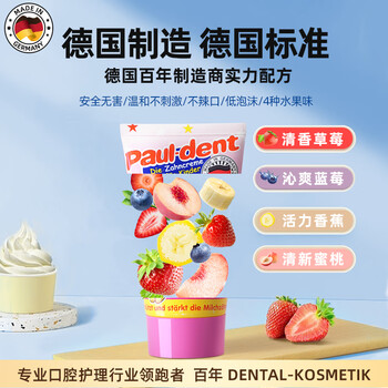 宝儿德(paul dent)德国进口儿童牙膏防蛀含氟宝宝1-3-6岁小孩专用不辣口蜜桃味50ml