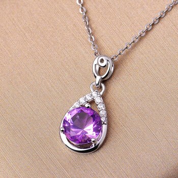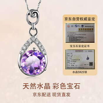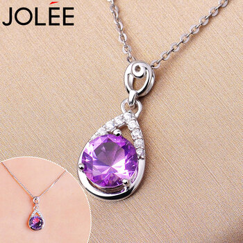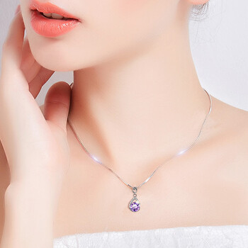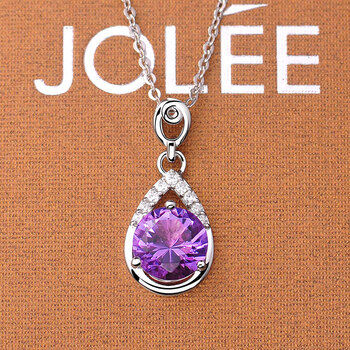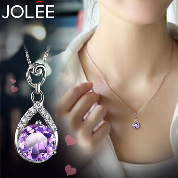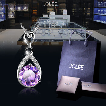 JOLEE项链女S925银吊坠紫水晶锁骨链简约项坠饰品送女生新年礼物