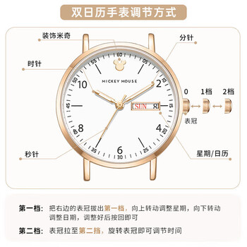 迪士尼(Disney)女士手表时尚双日历少女腕表生日开学情人节礼物送女生爱心礼盒装